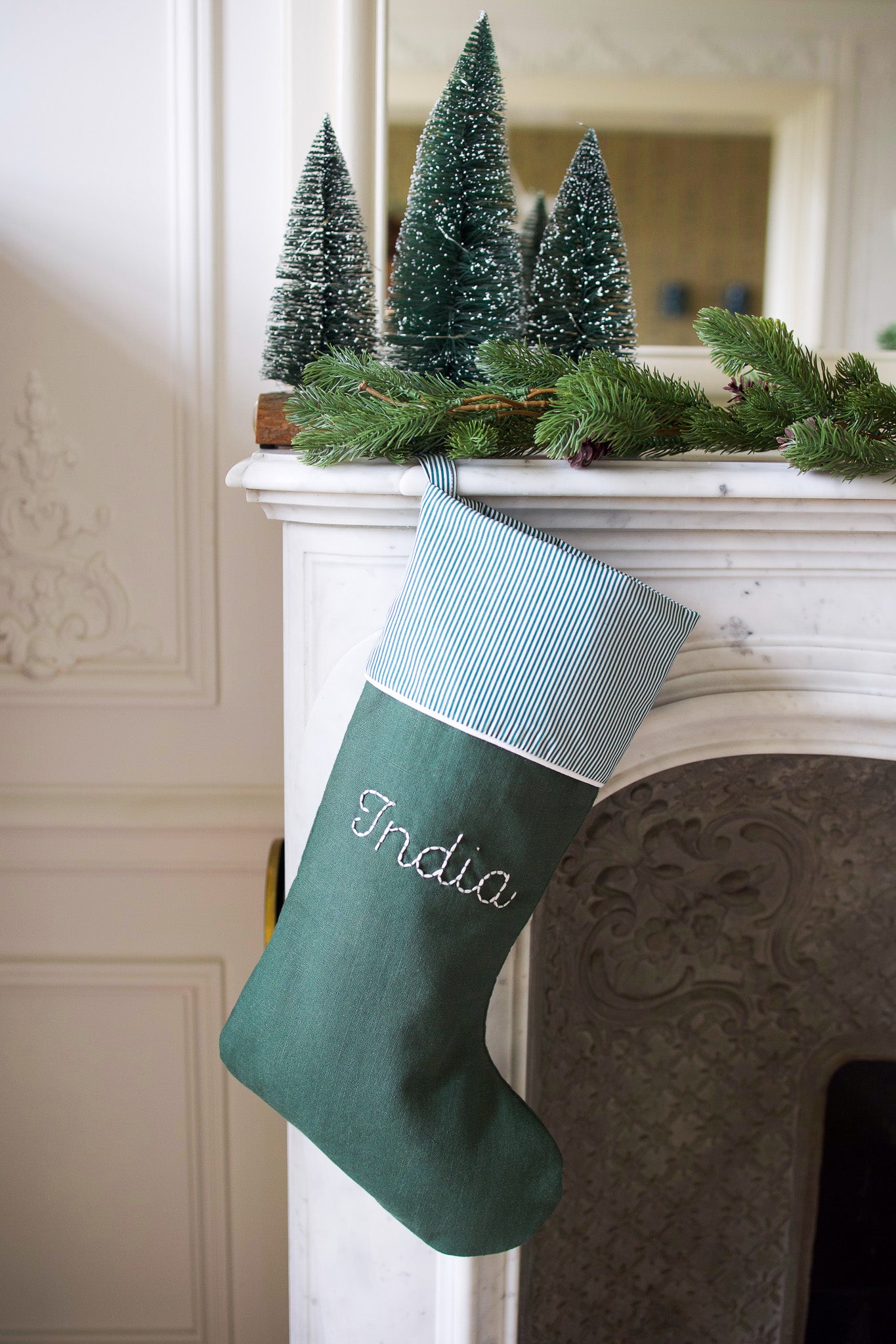 The embroidery is handmade in our own atelier in Portugal by our experienced and specialised embroiderers. You can personalise your stocking with a name or a letter in your choice of color. For reference, the embroidery color shown in the pictures is "White".