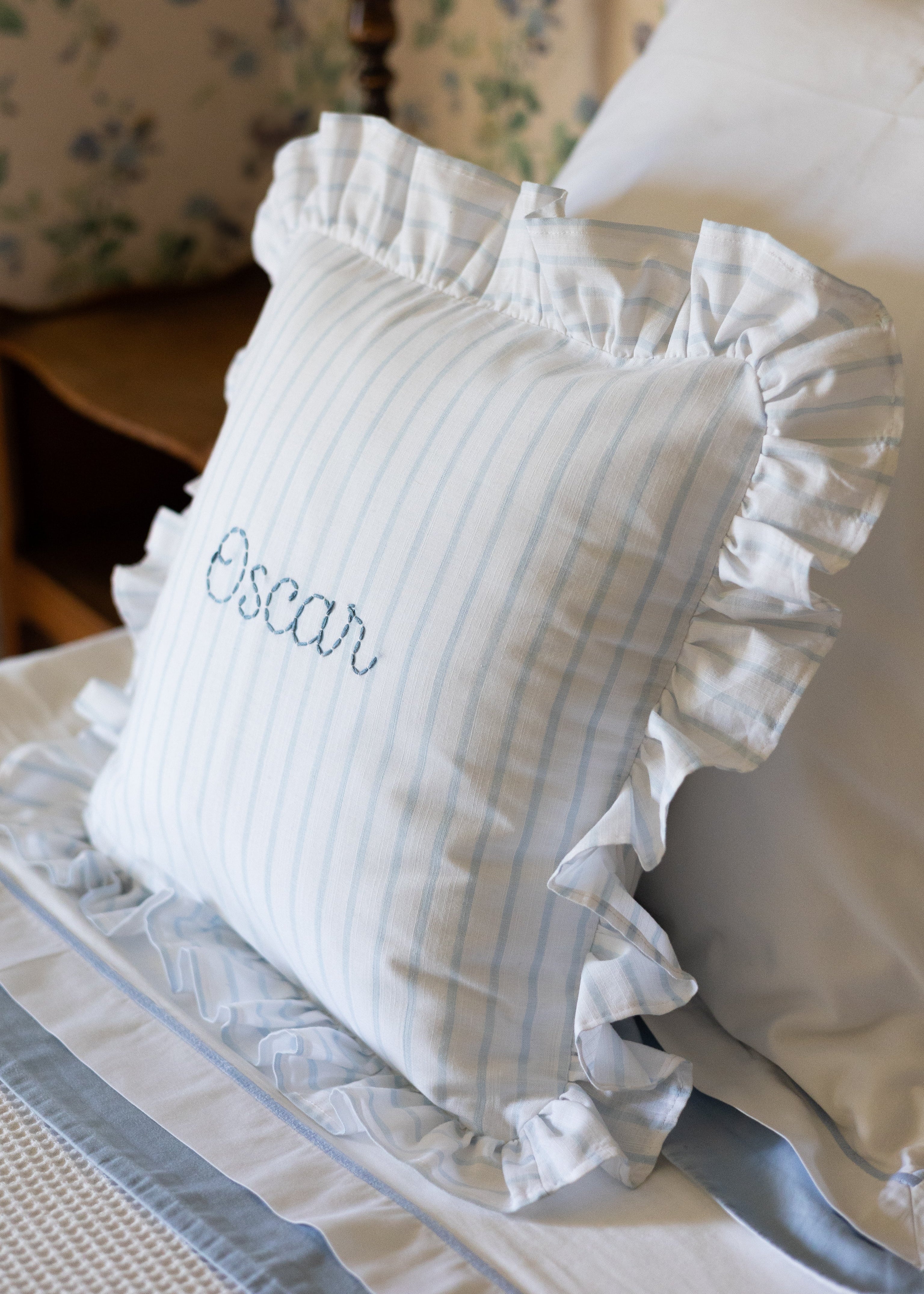 Each piece is personalised in our own atelier in Porto, where our experienced and qualified artisans hand-embroider your chosen details with care and precision.