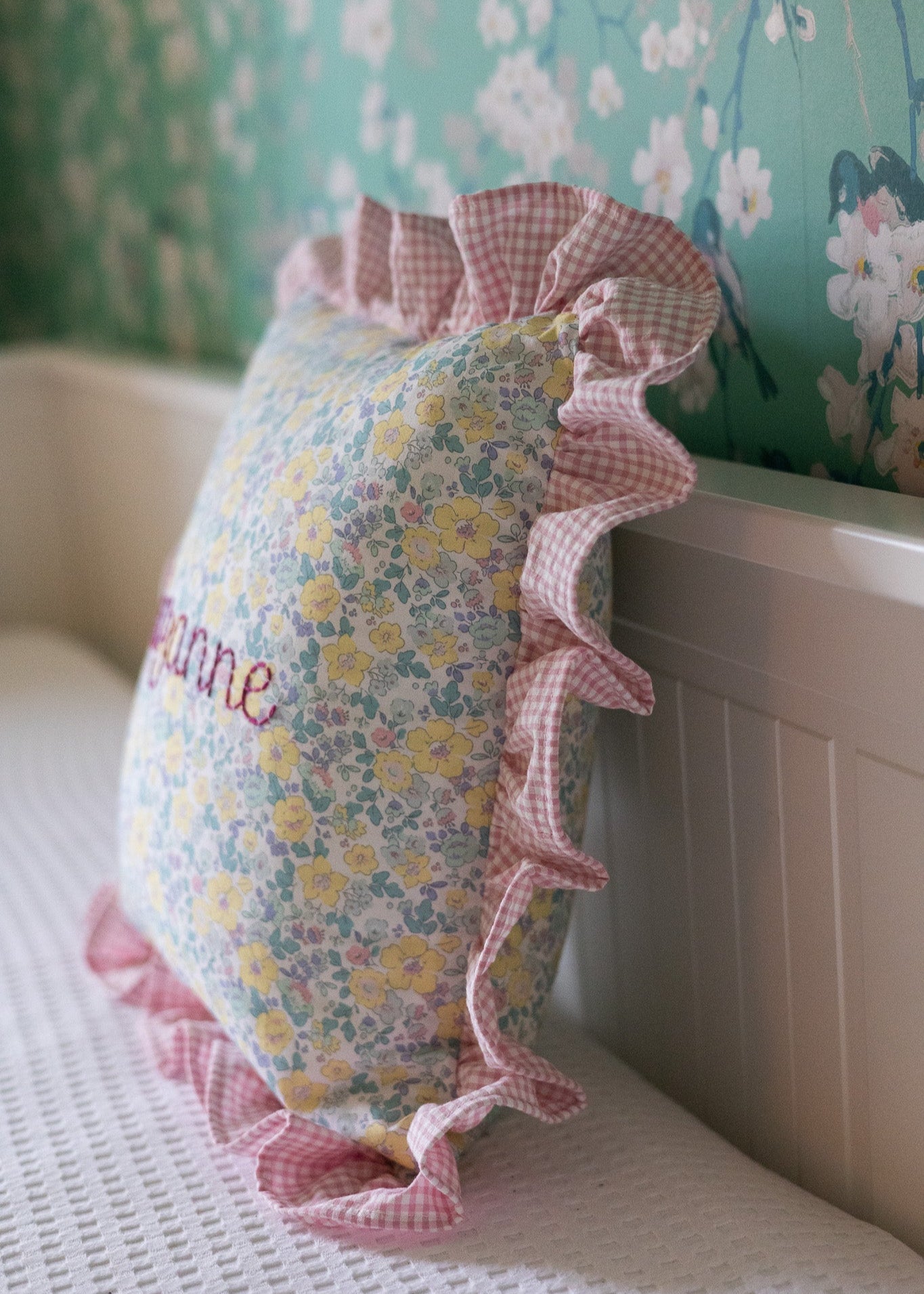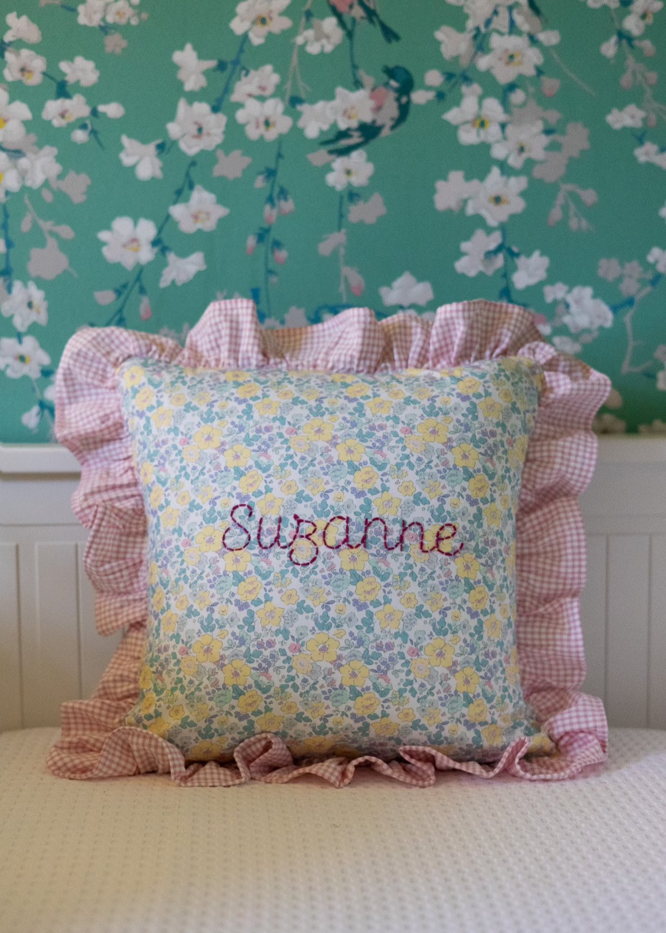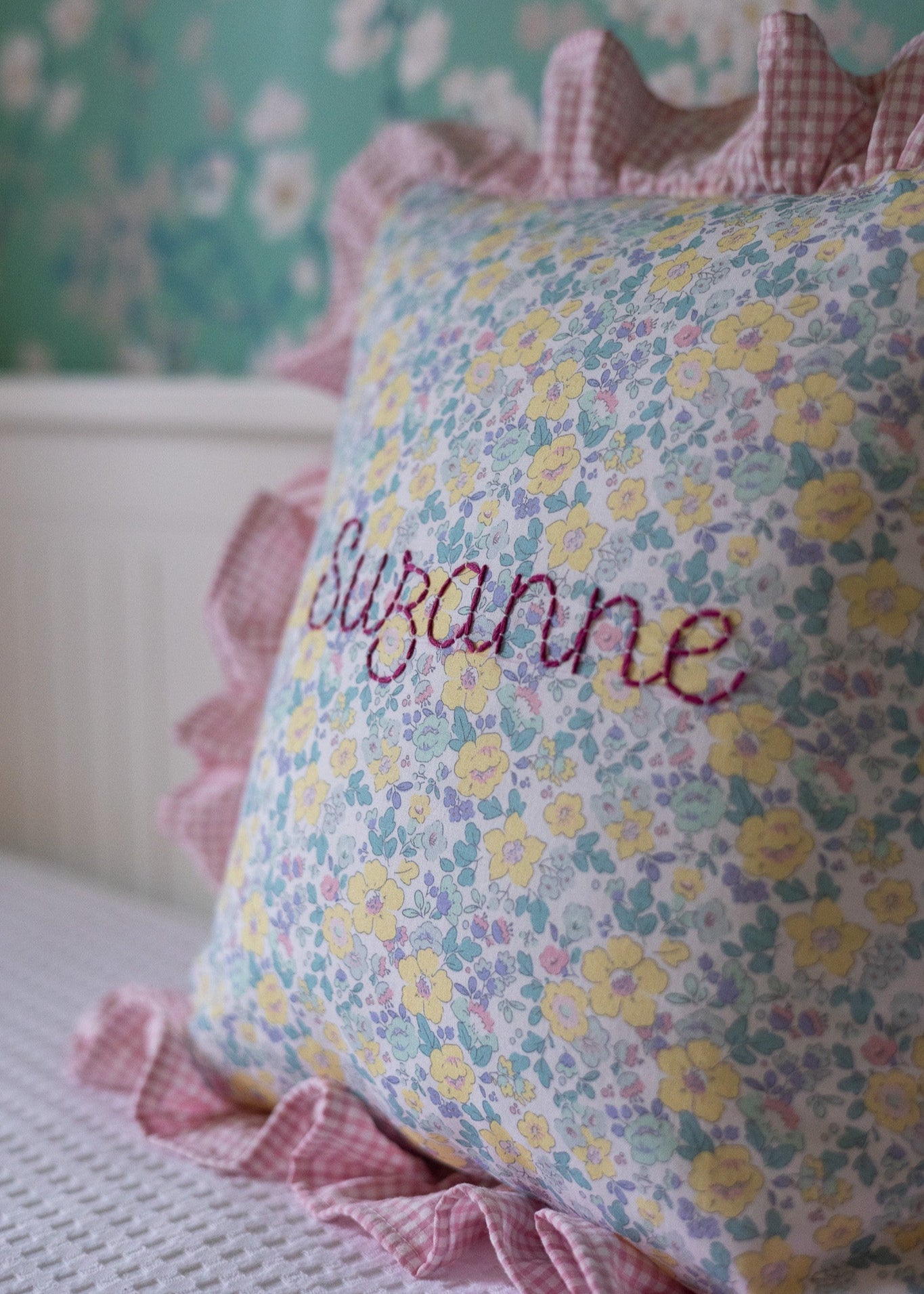 The embroidery is handmade in our own atelier in Portugal by our experienced and specialised embroiderers. You can personalise your item with a name, word, or initials in your choice of color. For reference, the embroidery color shown in the pictures is 'Dark Pink'.