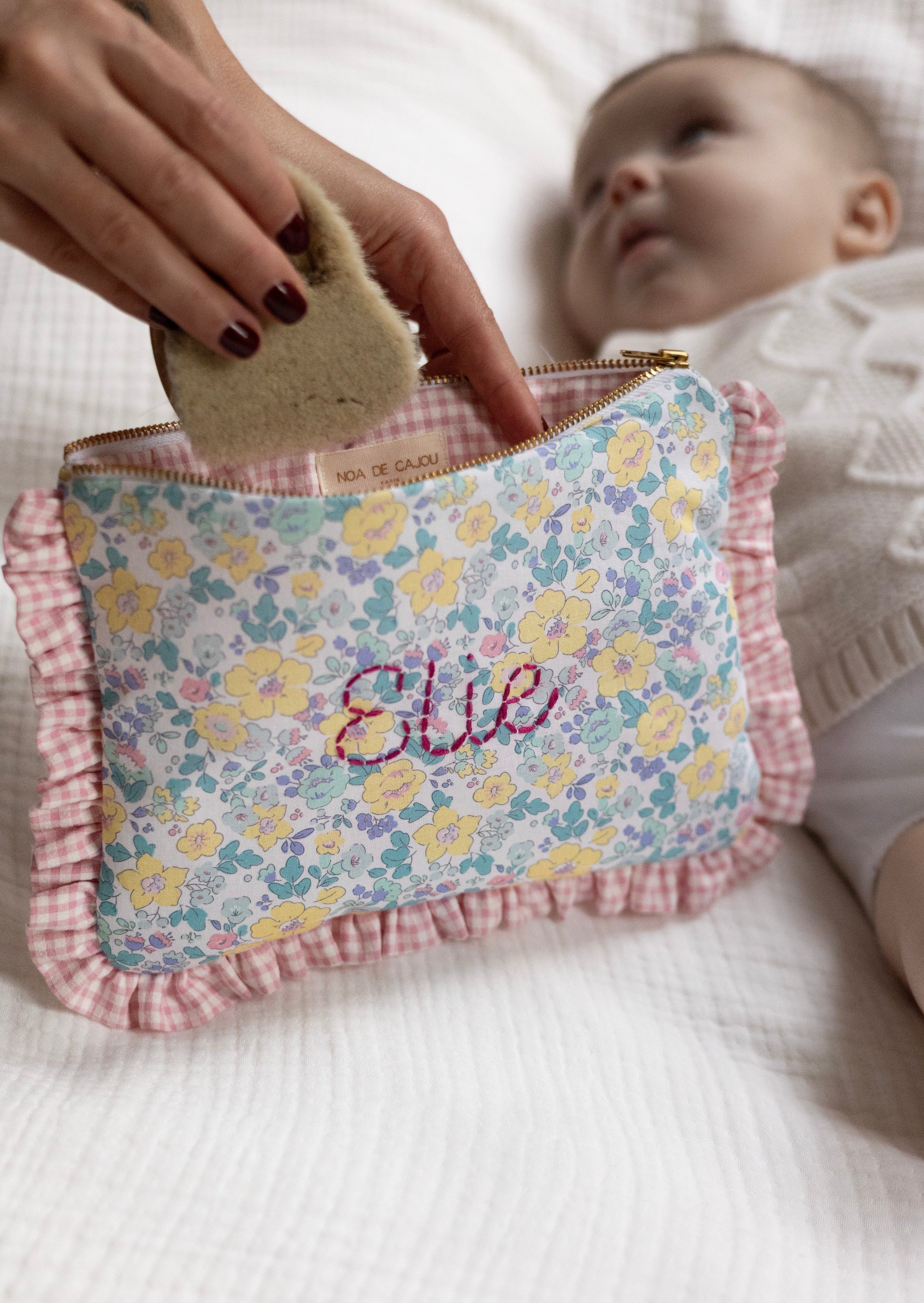 This is an UPCYCLE product: we used fabric shoots from our production to make this pouch to avoid any waste.