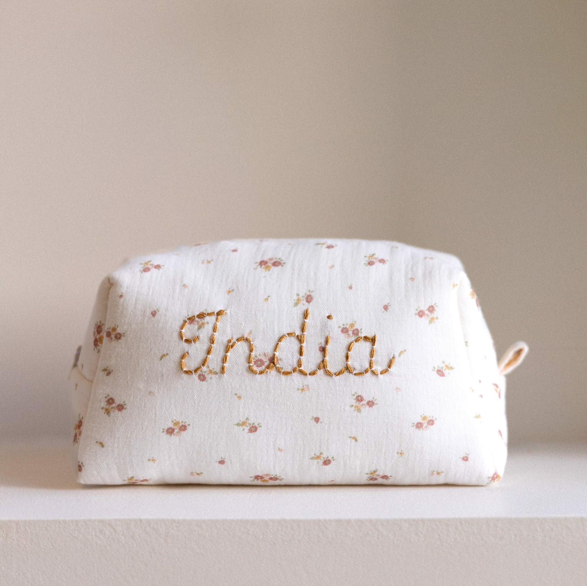 The embroidery is handmade in our own atelier in Portugal by our experienced and specialised embroiderers. You can personalise your item with a name, word, or initials in your choice of color. For reference, the embroidery color shown in the pictures is 'Mustard'.