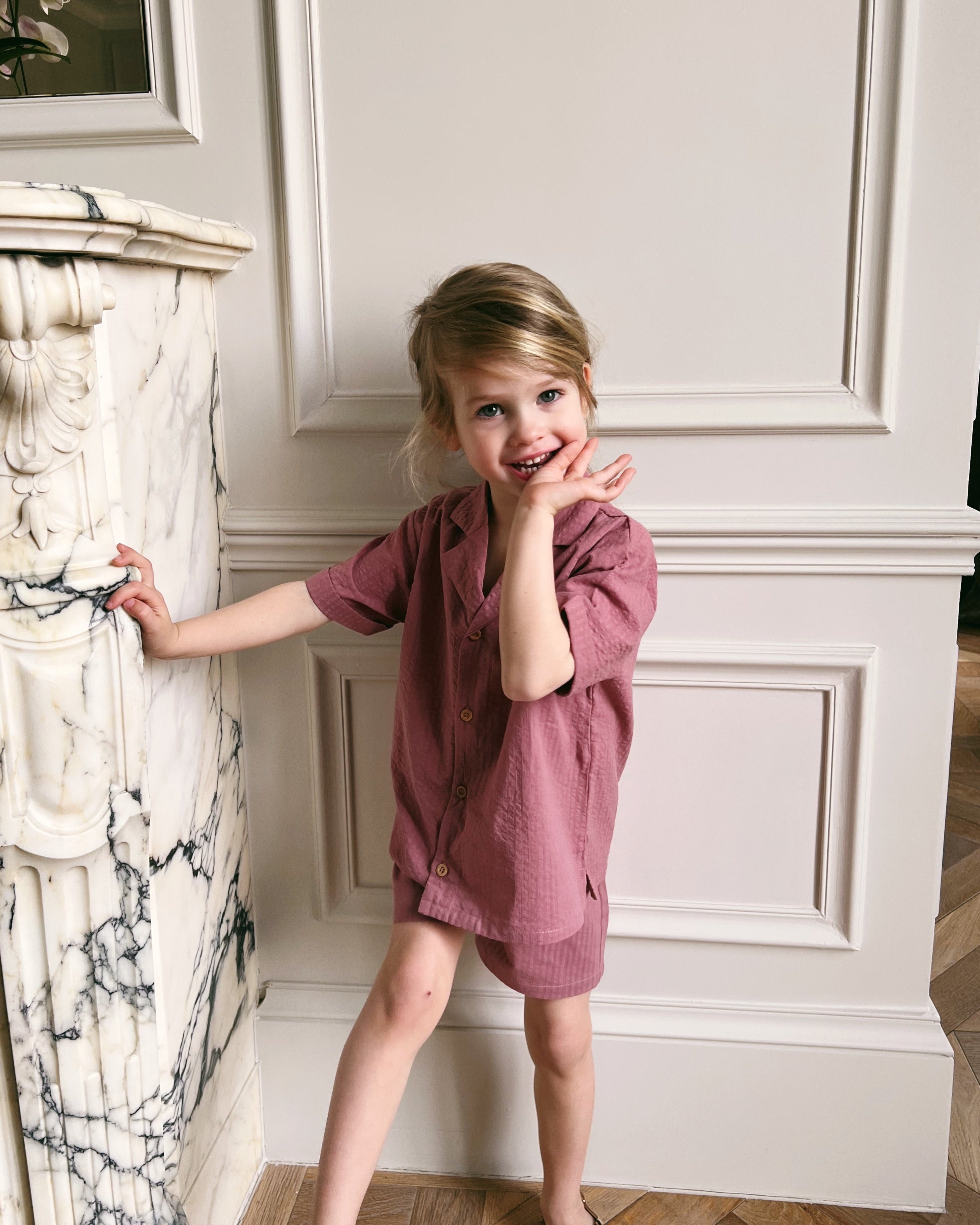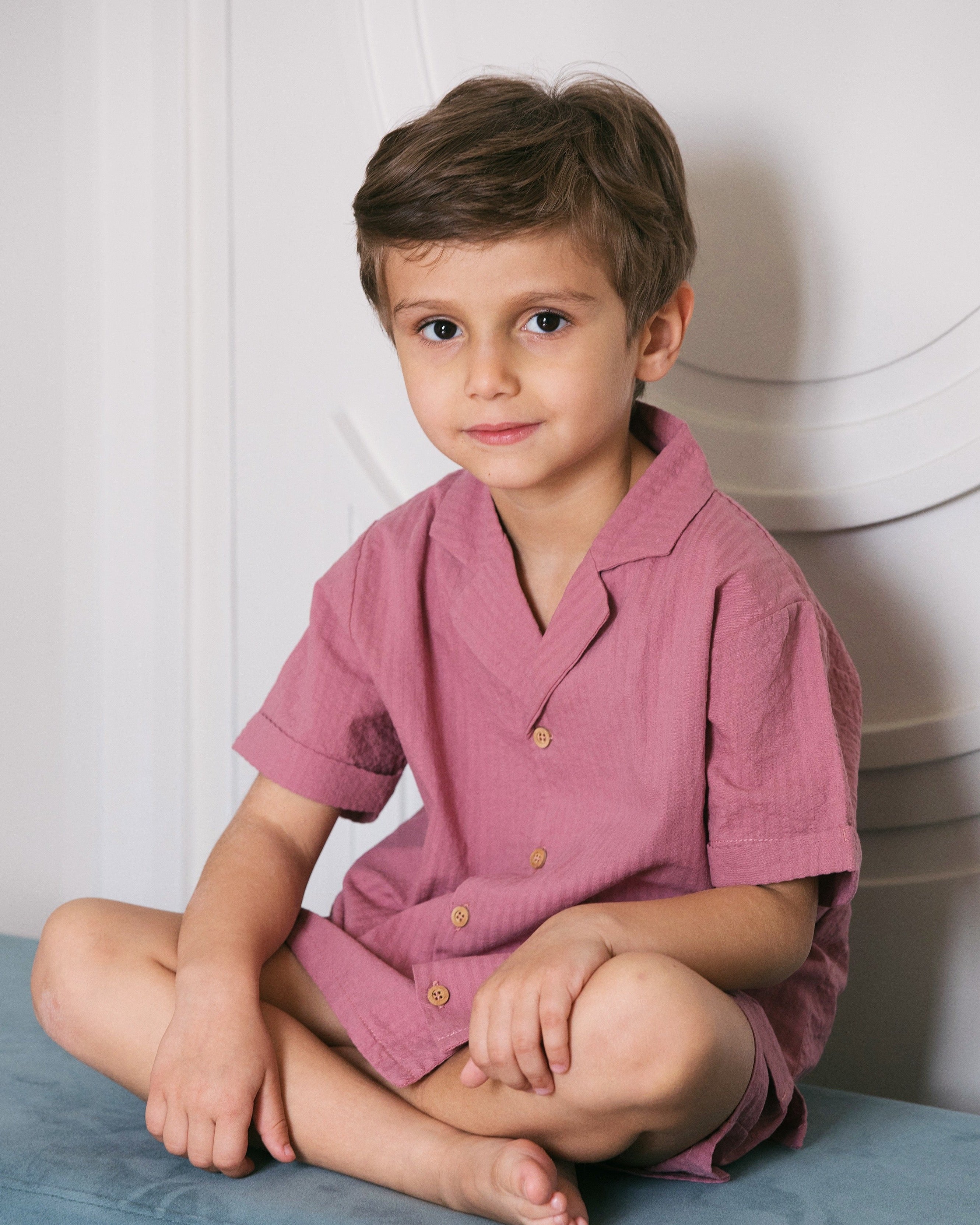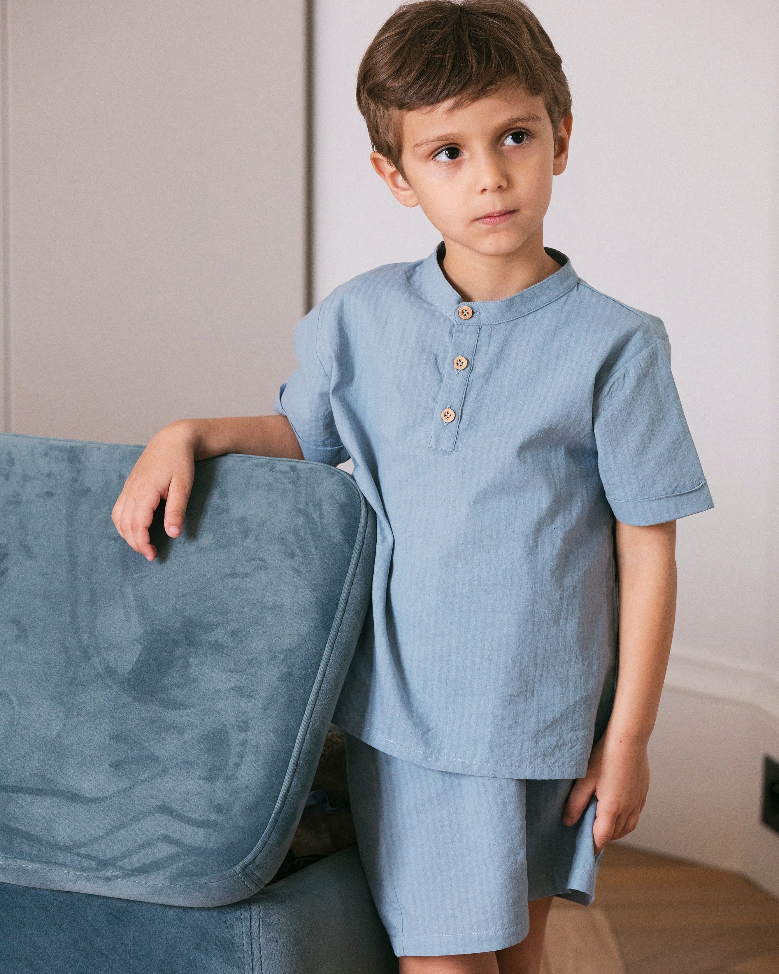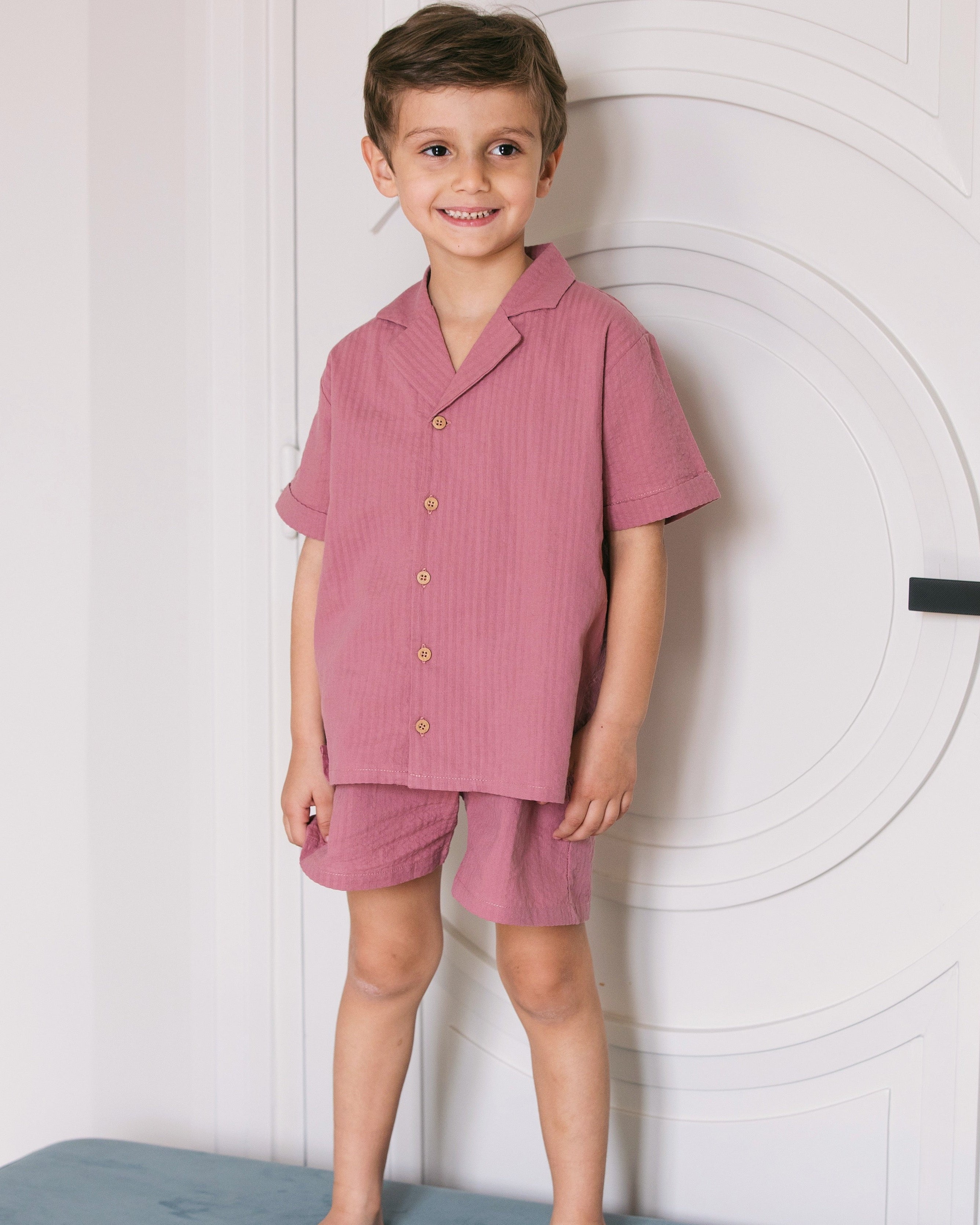 Top and matching shorts in 100% organic cotton, perfect for all summer casual and more formal occasions.