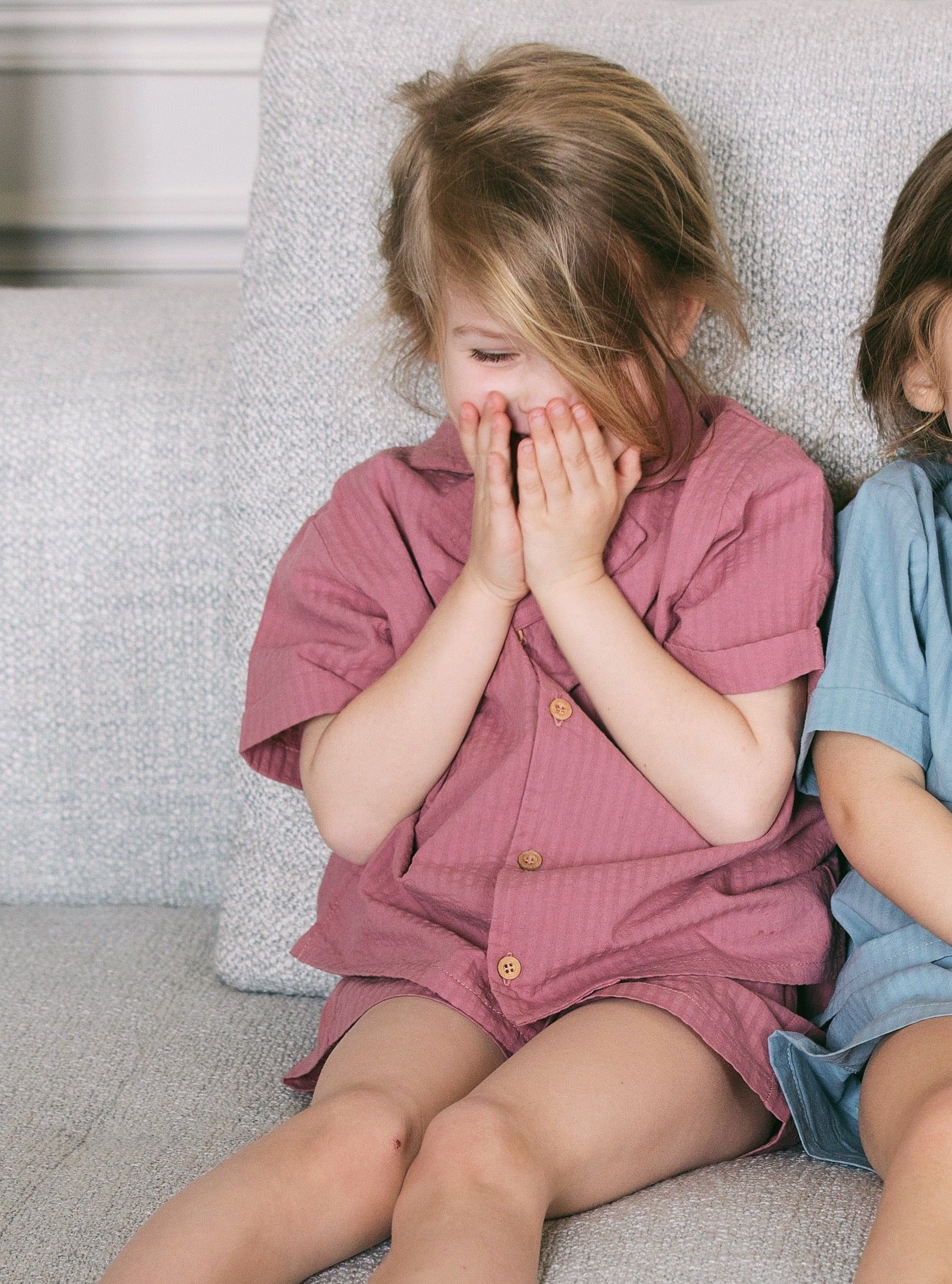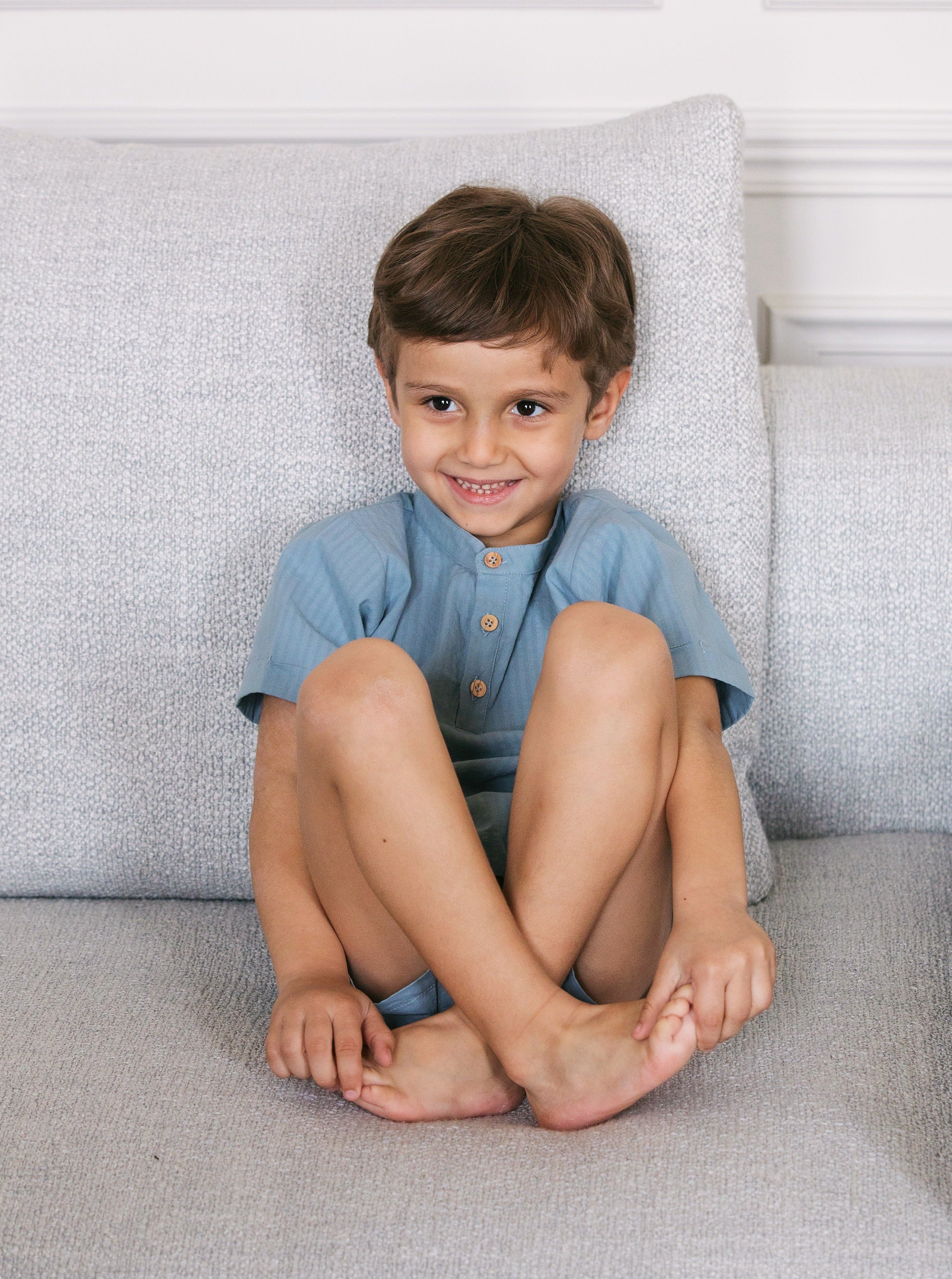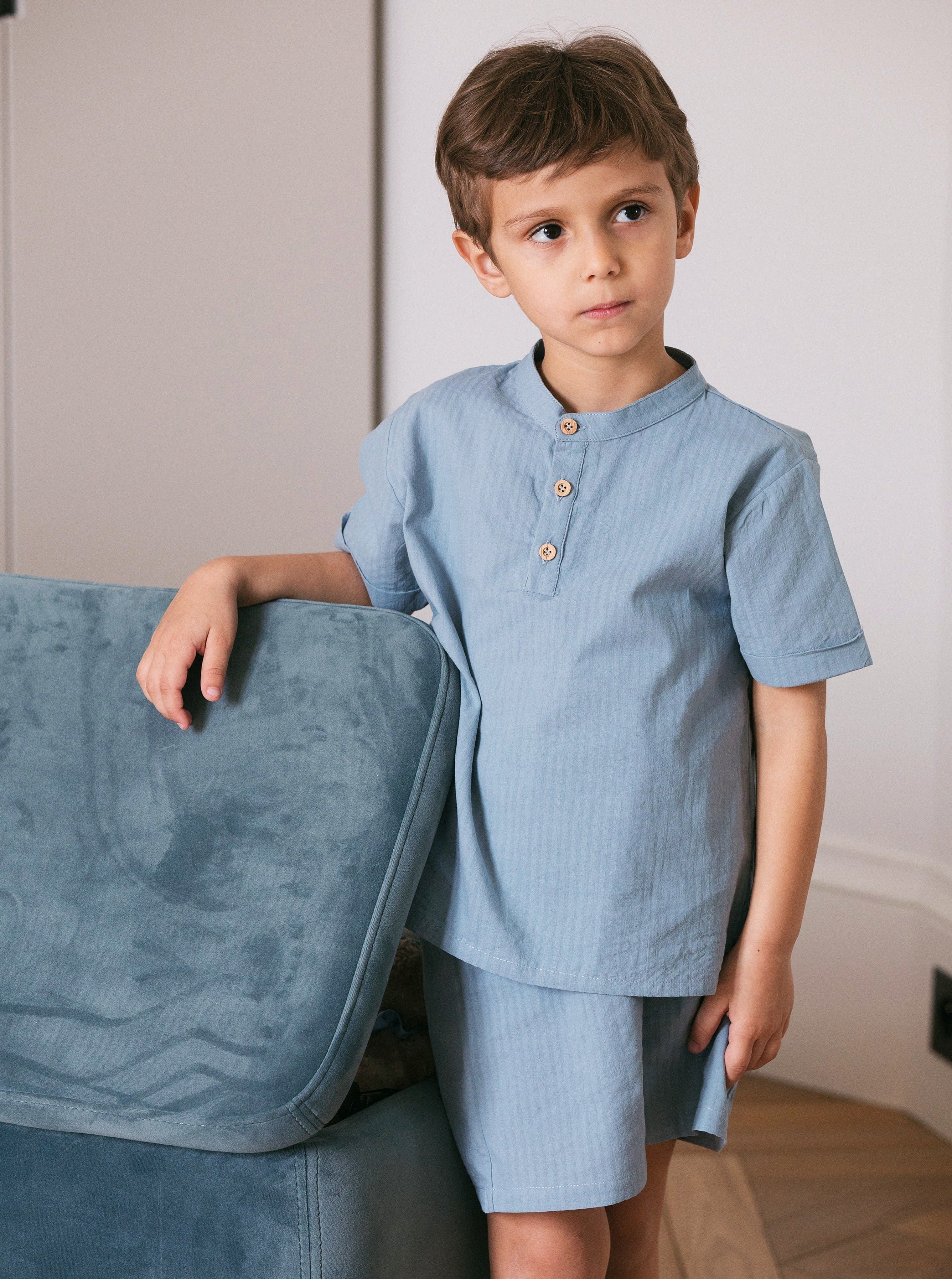 Top and matching shorts in 100% organic cotton, perfect for all summer casual and more formal occasions. For boys and girls.