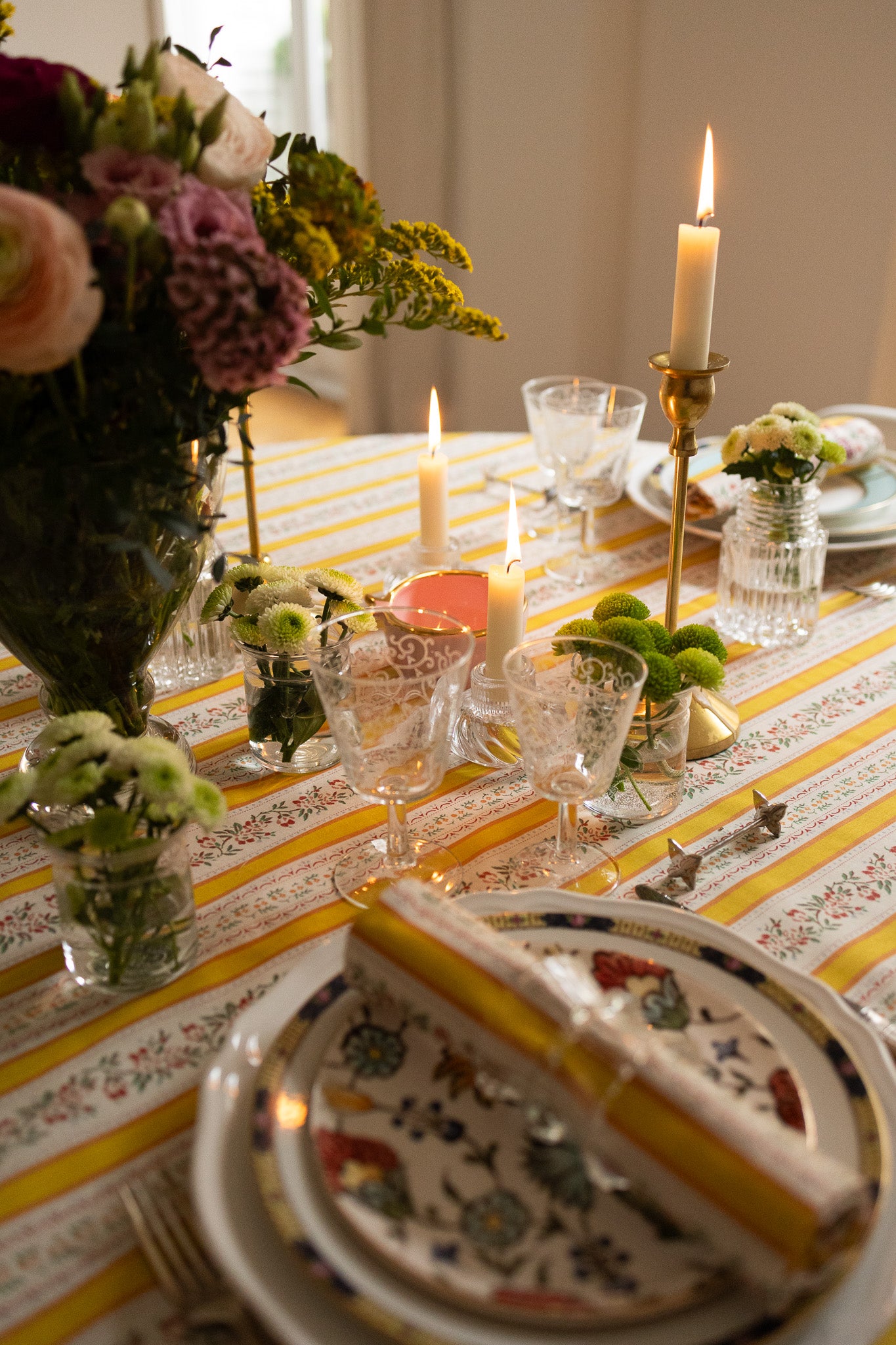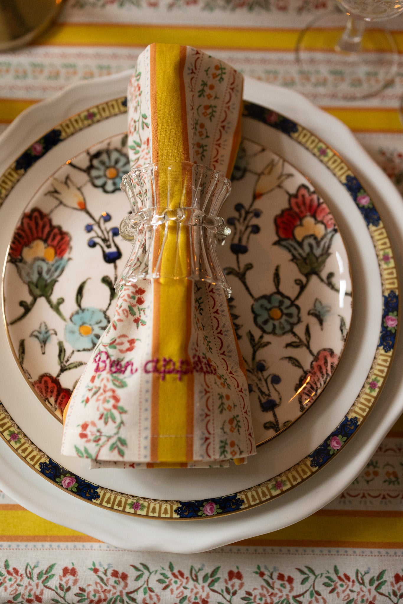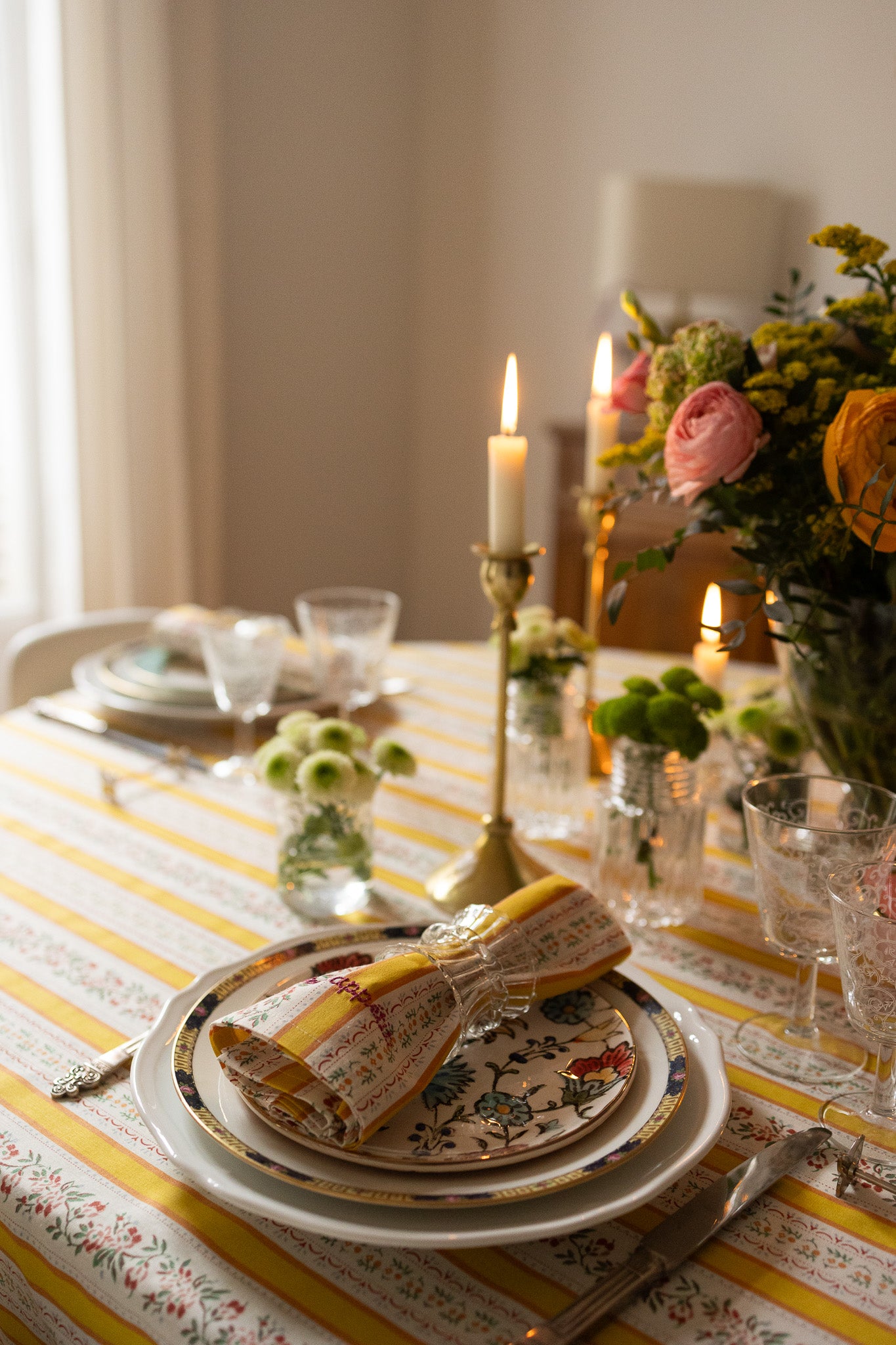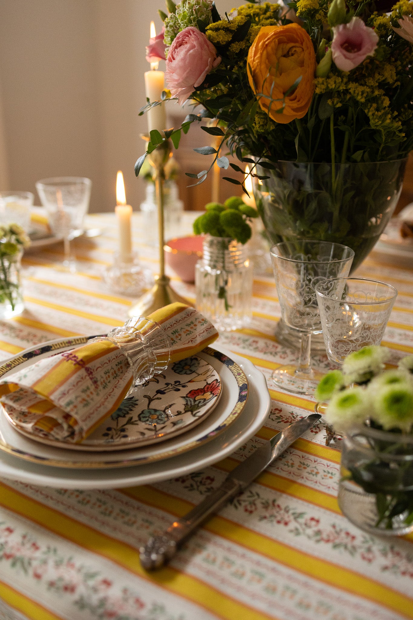This napkin is the perfect finishing touch to elevate your table setting and matches with it's tablecloth. Crafted from 100% Oeko-Tex certified cotton, it features yellow stripes and flowers.