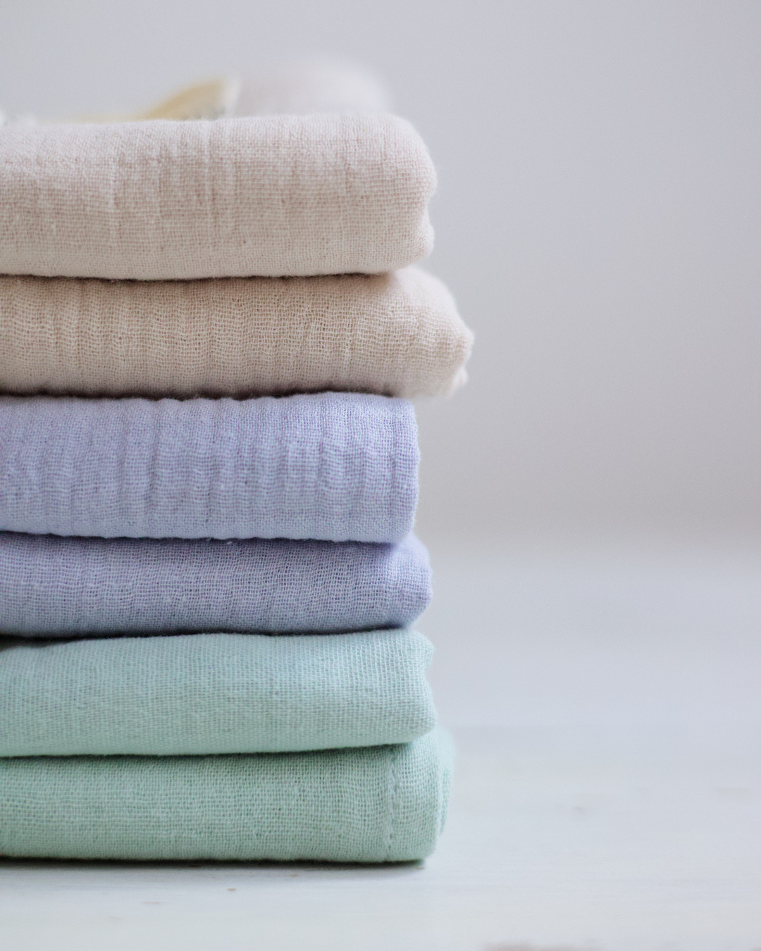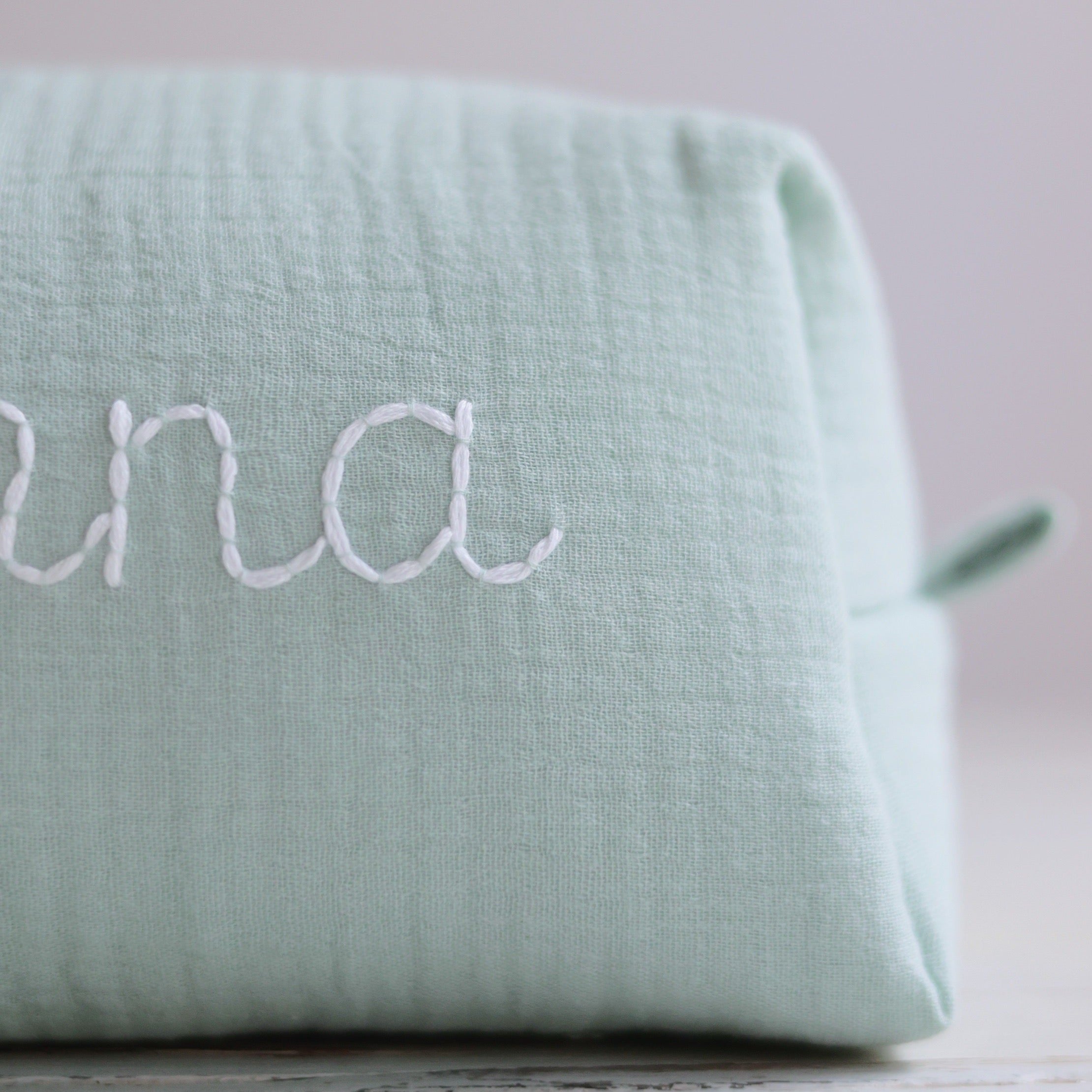 The swaddles are hand-embroidered and handcrafted in our own atelier using organic double gauze cotton fabrics that are Oeko-Tex certified. You can personalise your swaddles with a name, word, or initials in your favorite colour!