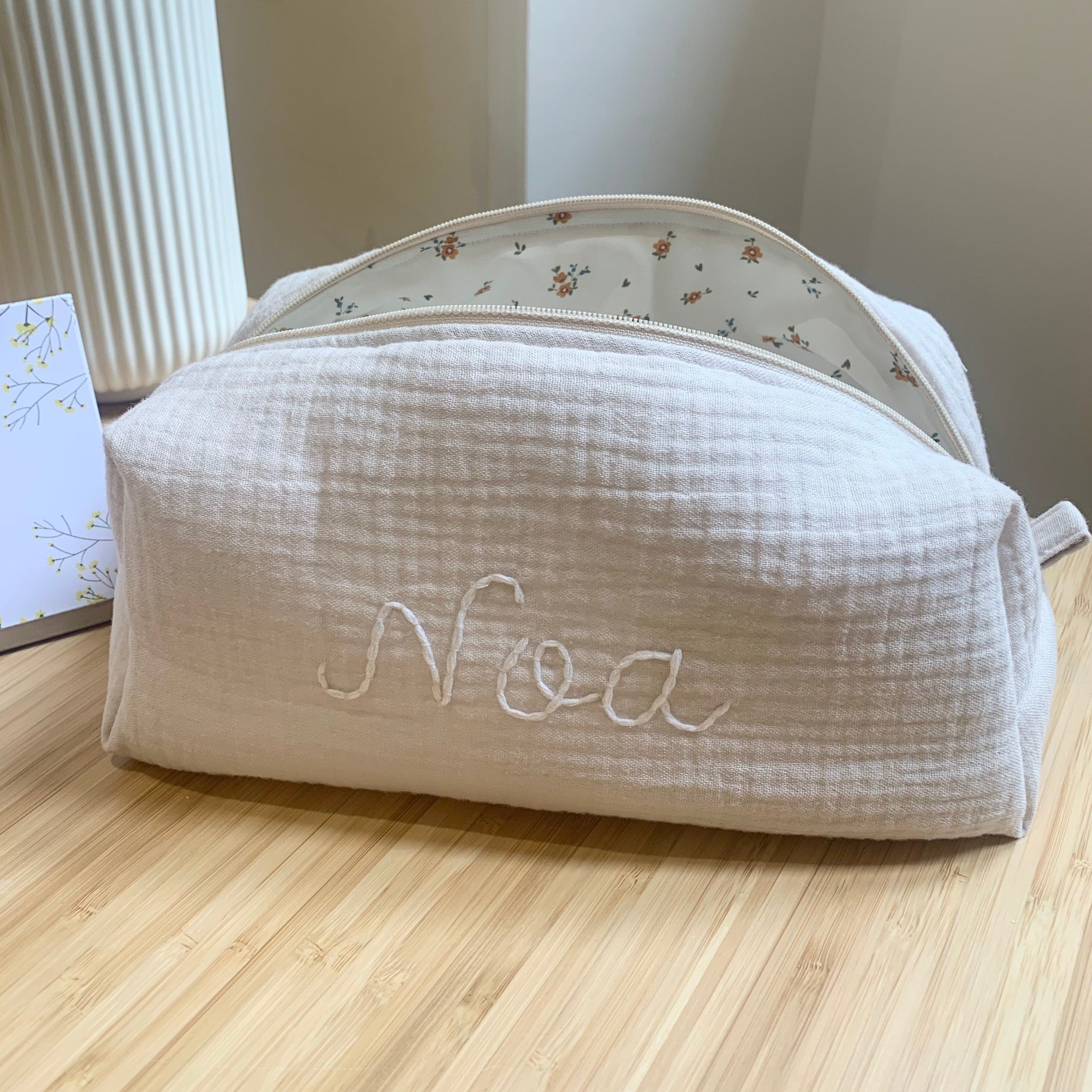 You can choose a name, a cherished nickname, initials, or a heartfelt word - whatever transforms this toiletry bag into a uniquely yours treasure or a cherished gift.