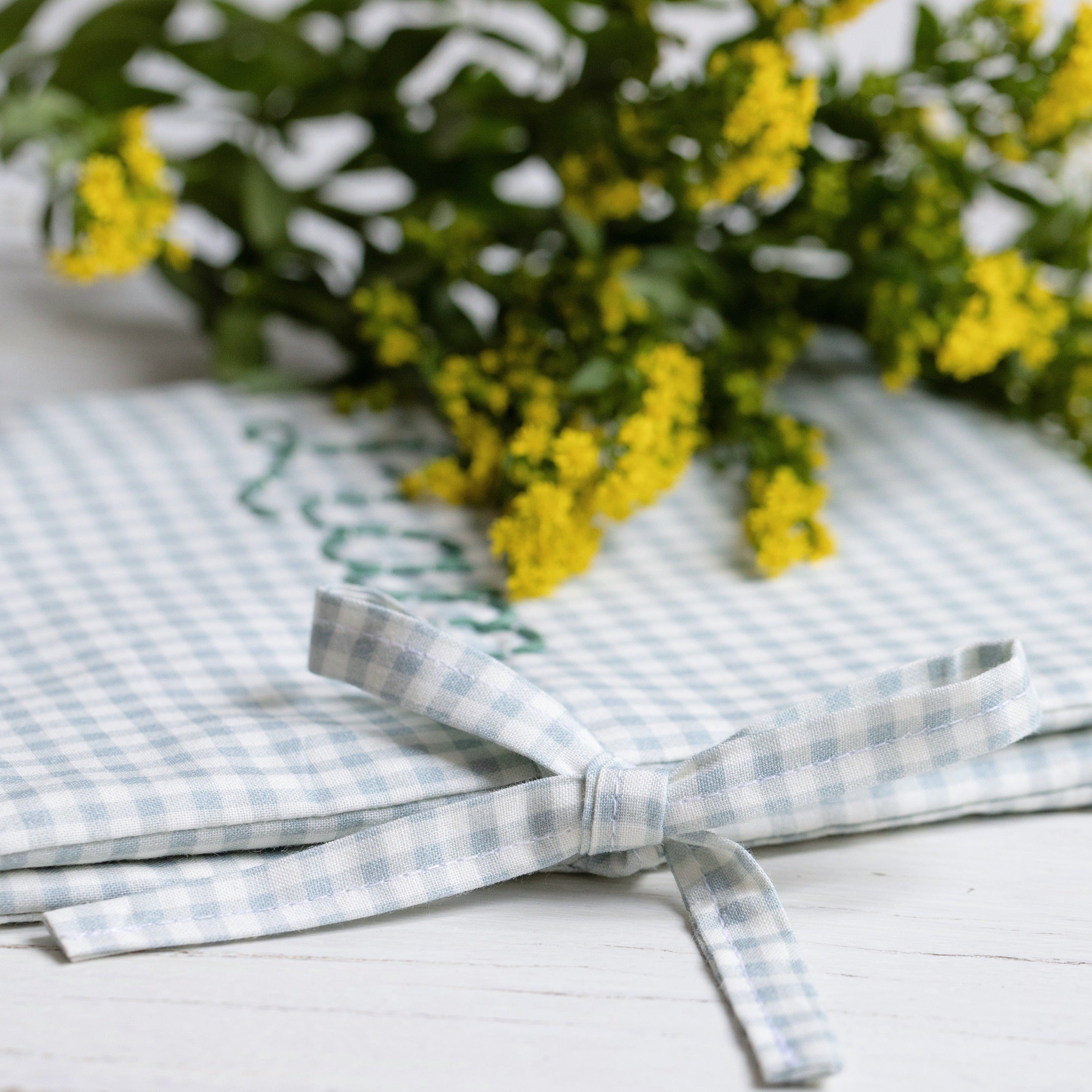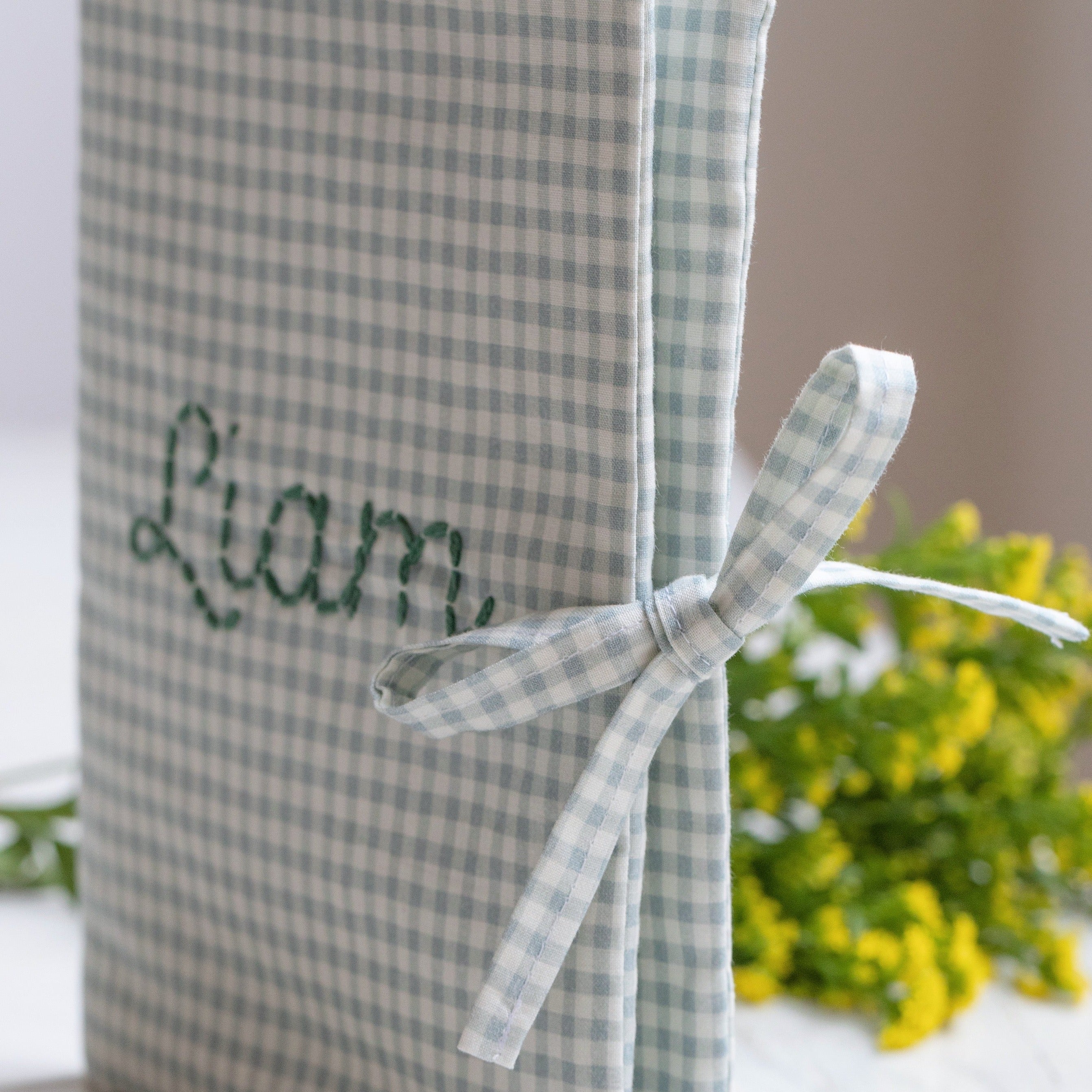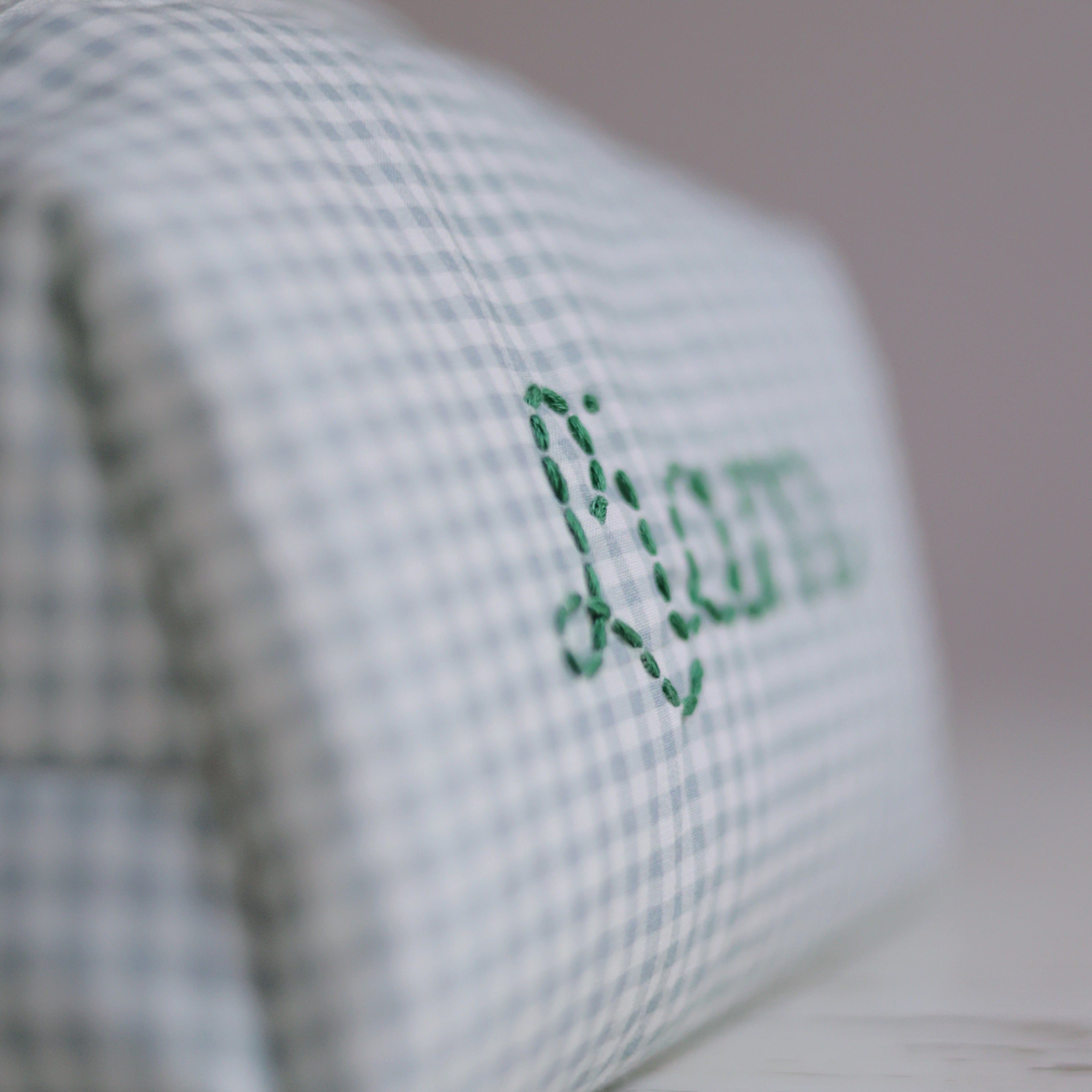 The embroidery is handmade in our own atelier in Portugal by our experienced and specialised embroiderers. You can personalise your item with a name, word, or initials in your choice of color. For reference, the embroidery color shown in the pictures is 'Green’.